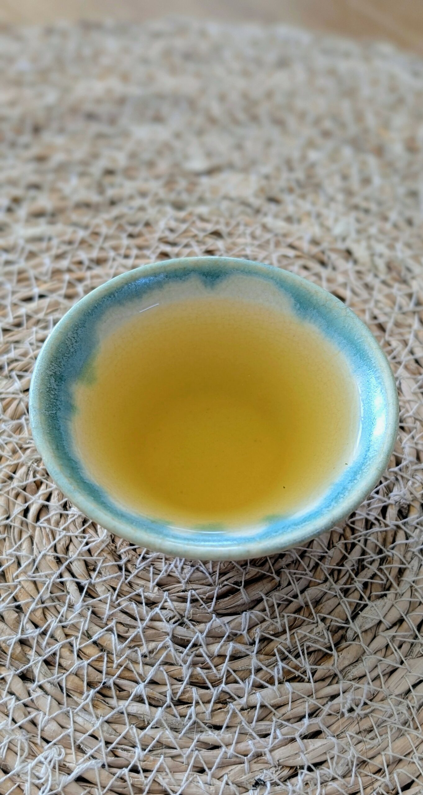 Issu des plantations de la famille Koyanagi, ce kama-iri cha Fuji-kaori nous emmène donc à la source même de ce cultivar rare, emblématique de Fujieda. La liqueur reste très légère et rafraîchissante, sans aucune lourdeur, preuve d’un flétrissement maîtrisé. Il n’y a pas d’astringence alors qu’à l’inverse on ne trouve pas non plus d’umami mis en exergue, laissant le champs libre à un thé tout en parfums et arômes. »