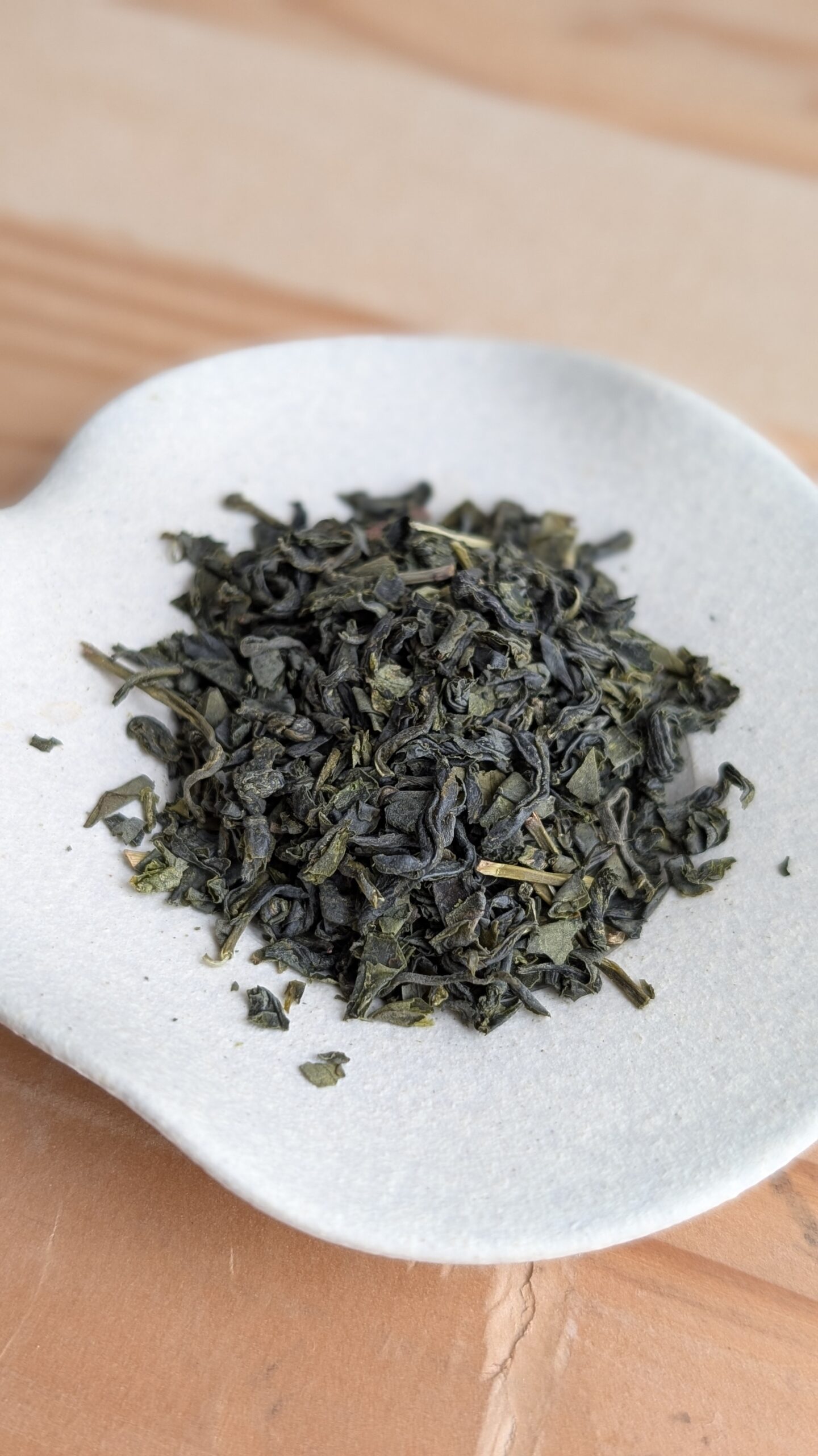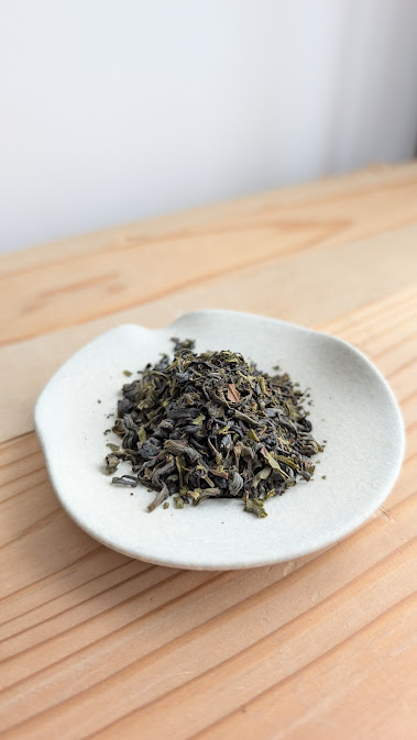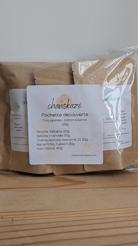 Ce thé vert est fabriqué selon la méthode chinoise : on passe les feuilles sur une plaque chaude et non à la vapeur, comparé aux senchas japonais, pour stopper l’oxydation. Cette méthode n’est presque plus utilisées au Japon, ce qui en fait un thé rare. Il sera sur la boutique et dans cette pochette en édition limitée uniquement le temps de l’automne, en collaboration avec Florent Weugue de Thés du Japon.
